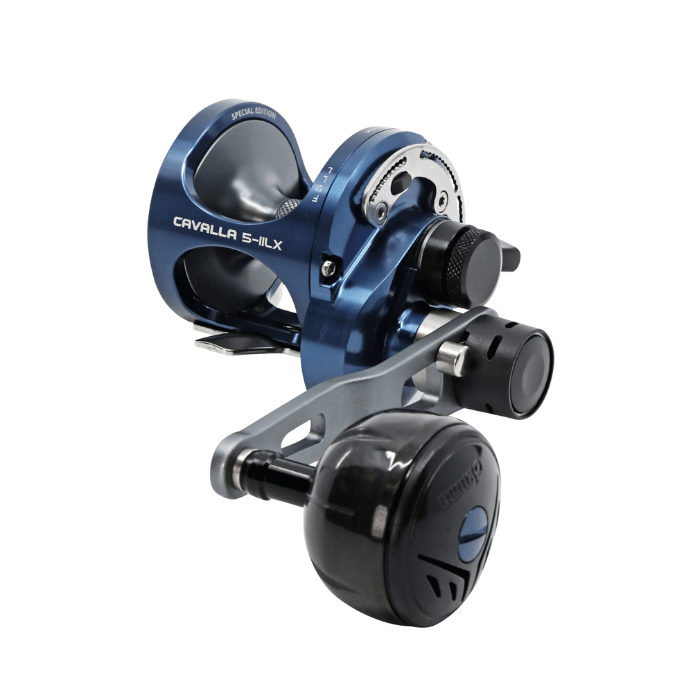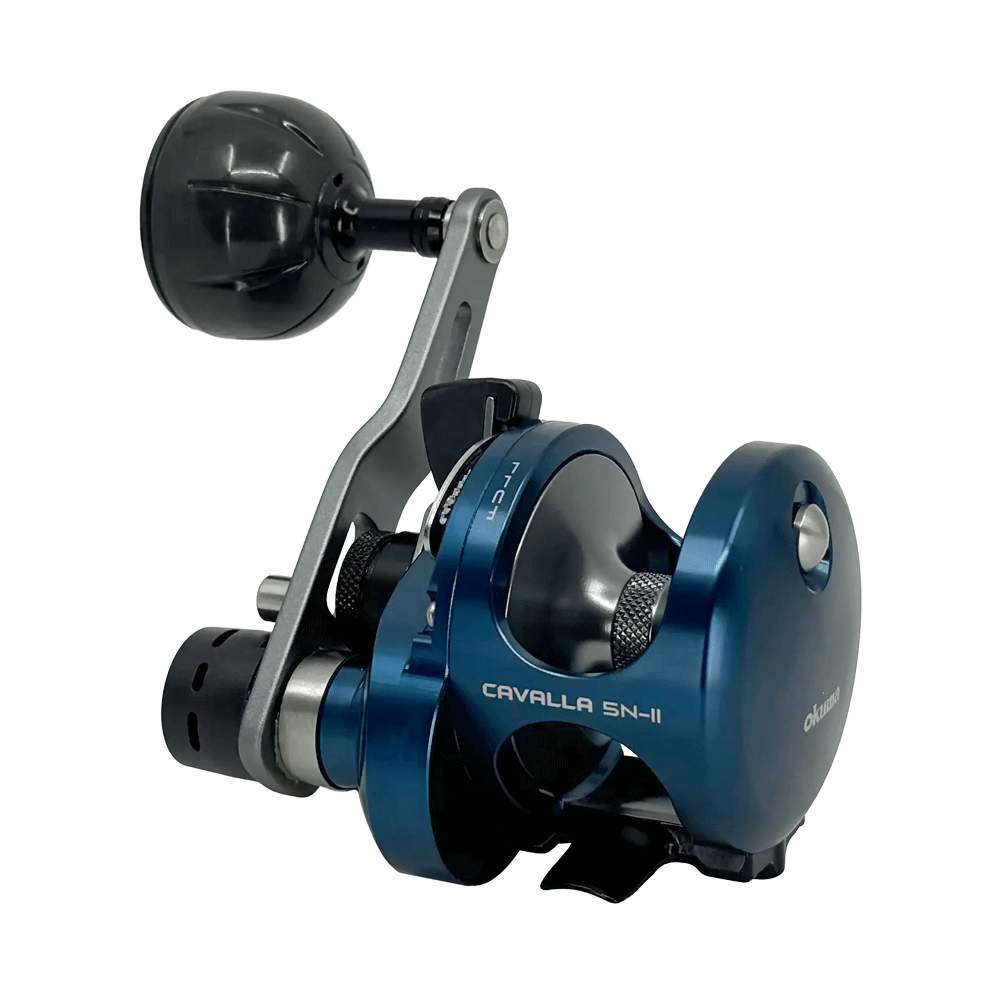 Carreto Okuma Cavalla Narrow 5N-II LX LH MB para canhotos, de dupla velocidade (bobine estreita). Edição limitada em “Azul Meia-Noite” com um novo botão redondo maior para uma aderência firme e potente. Compacto e incrivelmente potente, o Okuma Cavalla 5N-II LX é um carreto compacto com uma potência sem precedentes. Concebido para novas técnicas de pesca vertical que exigem a utilização de um carreto com a manivela à esquerda e para a pesca de corrico com isco vivo para pescadores canhotos.